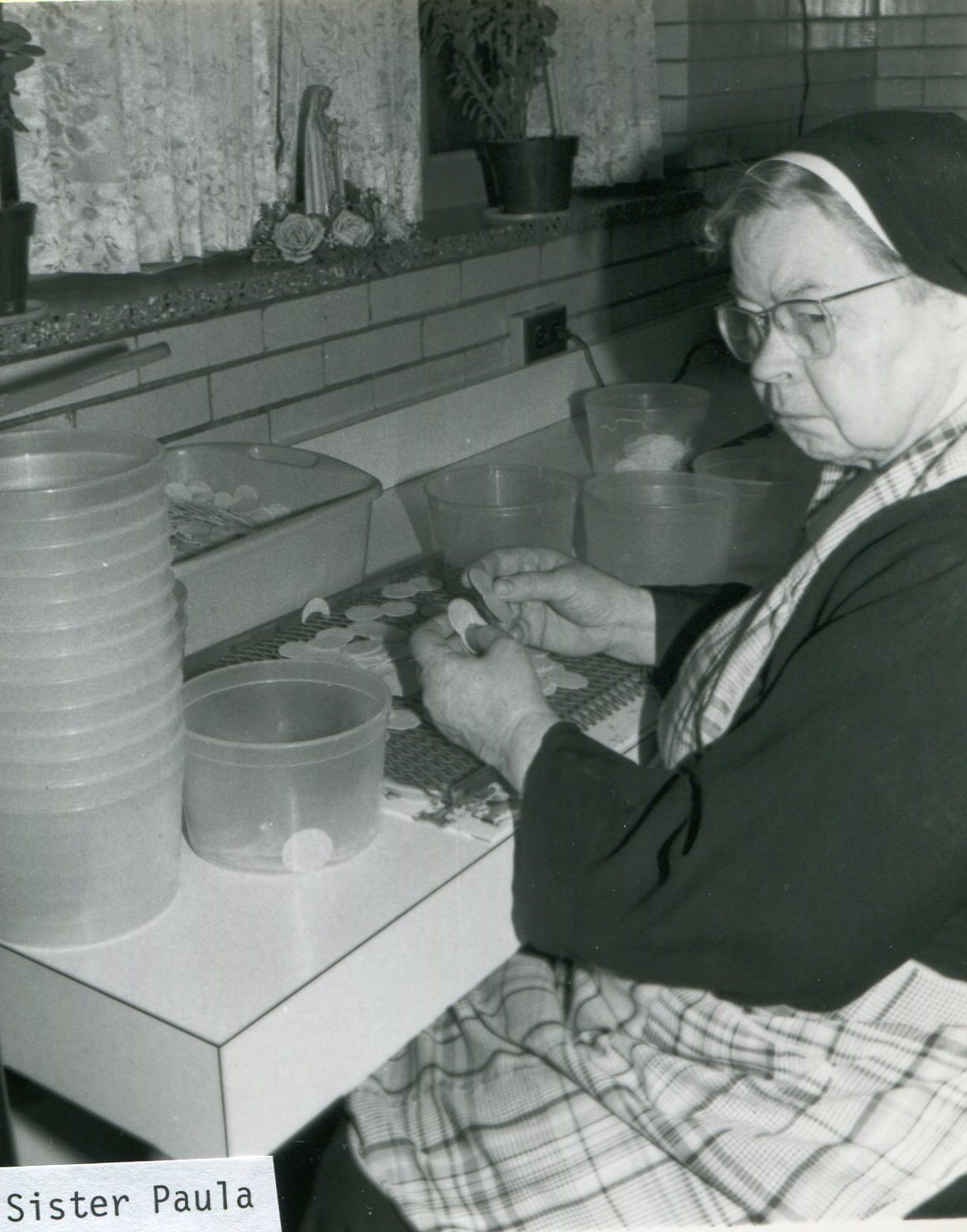 Sister Mary Augustine was a well- respected procurator entrusted with the management of our community finances. Her dynamic bartering with company managers in downtown Chicago compelled them to lower prices because she was good at knowing how much an item was worth. She was a careful steward of all properties in the Monastery and it seemed she was present everywhere; in the chapel, in the kitchen, in the altar-bread room, in the laundry, in the yard… always trying to make sure nothing was out of order. She was never idle and provided everything the Sisters needed even the small things like candy.
