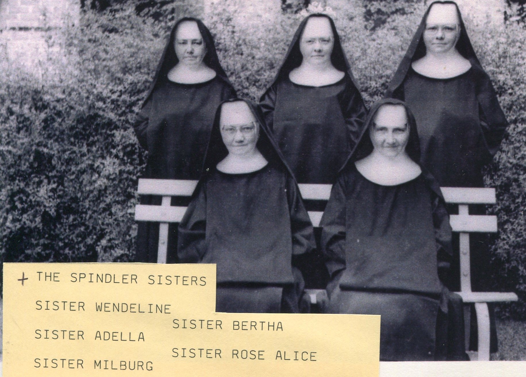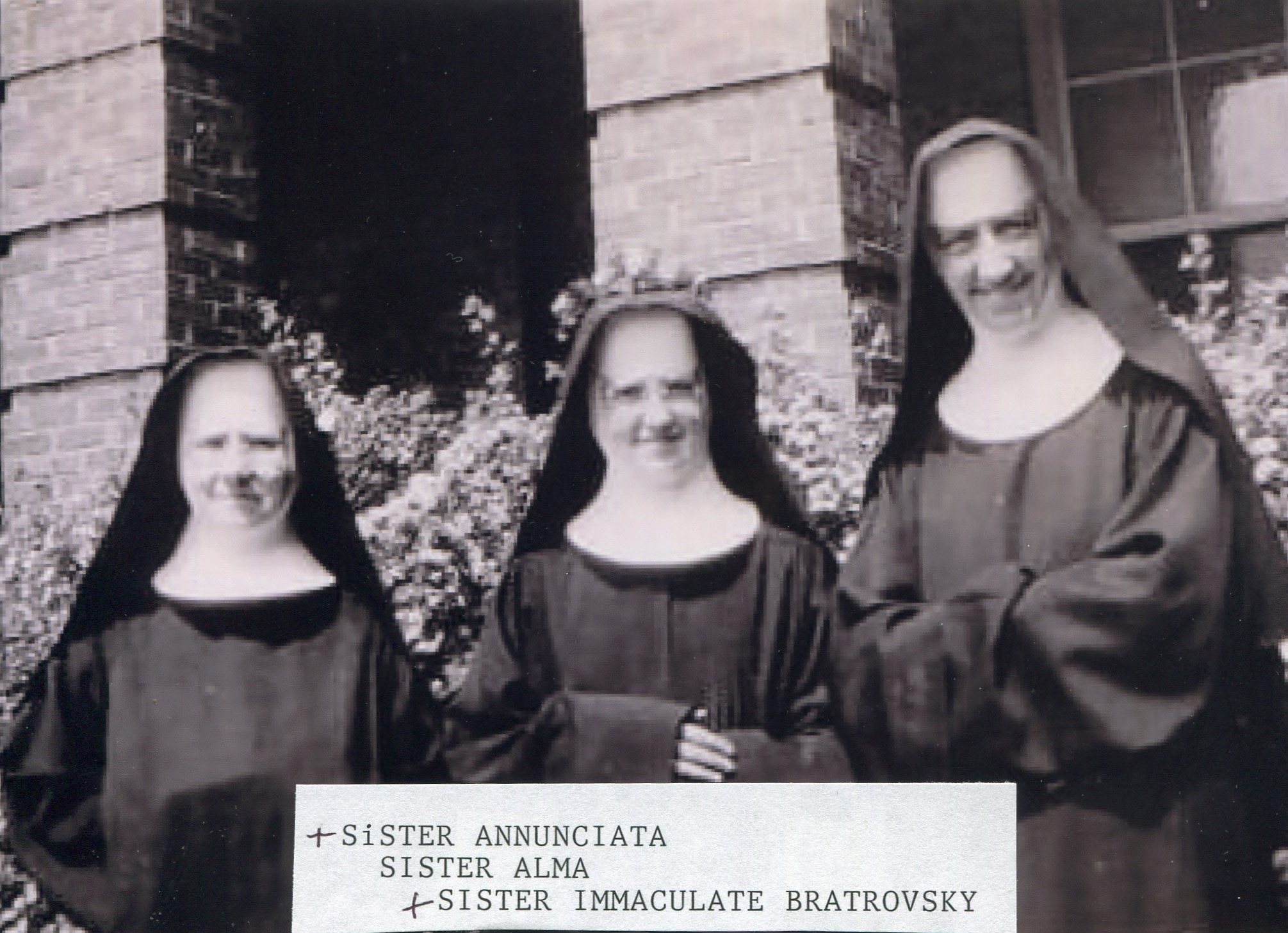 Sister Veronica, (later Sister Mary Borgia), was a younger sister to Sister Carolyn Marie (a.k.a. Sister Bonaventure). As a little child, Veronica was cared for at St. Joseph’s Orphanage. She was soon adopted by a family but Sister Carolyn Marie lost track of her whereabouts. Sister prayed fervently that she would be reunited with her little sister someday. Then, when Veronica’s foster mother became terminally ill, she brought Veronica, at 14 years of age, back to the orphanage. Veronica saw how happy Sister Carolyn Marie was to see her, and wanted to become a Sister as well. She was readily received to be a Benedictine receiving the name of Sister Mary Borgia. She proved to be a virtuous, young soul and dearly loved by the Sisters. Five years went by when she contracted T.B. and died at age 19.