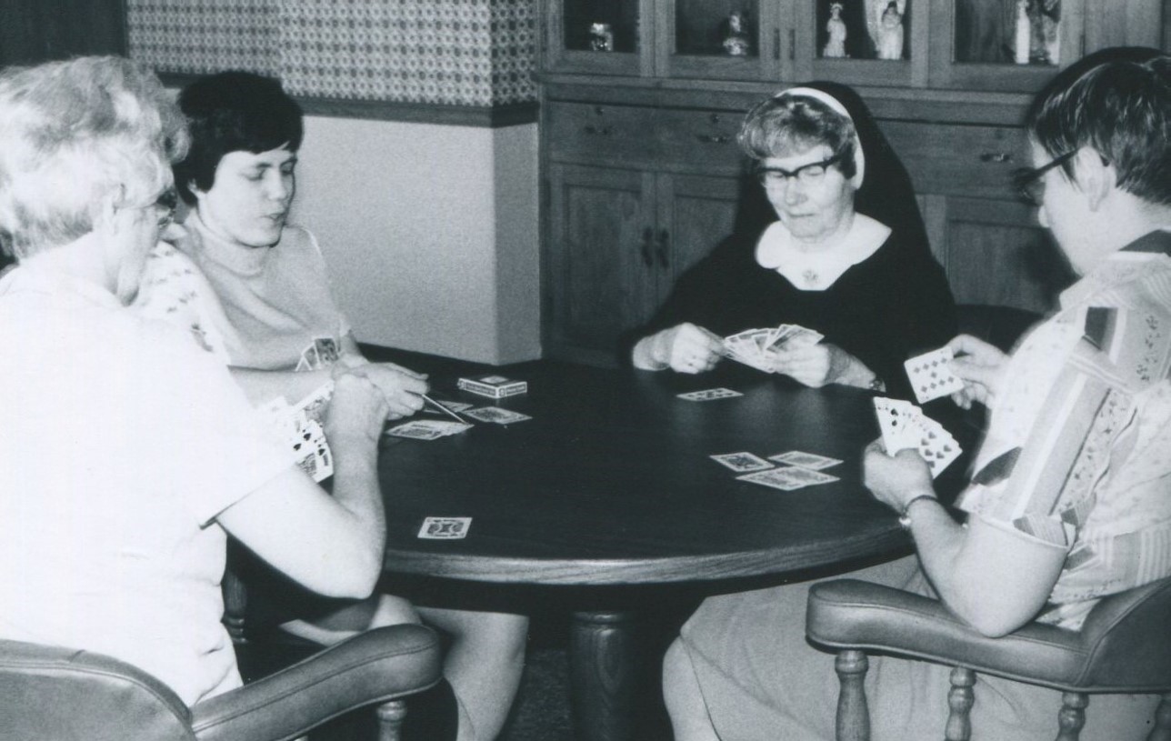 Sister Mary Sefcik, as a common sense 14-year-old, wanted to help out with her family’s dire finances and applied for a job at a cookie factory in Chicago. She lied about her age saying she was 16 and was hired. When she entered the monastery, her cookie factory experience was her diploma to be a cook and baker for the rest of her days. She was a dutiful soul with a child–like eagerness to be helpful wherever she was needed. When the Knights of Columbus set up BINGO in our gym, Sister Mary would be there every Sunday, hoping and praying to win to be able to present her money to a good cause. As she was dying she asked for a paper and pencil and wrote: “I love everyone here” completing her intent of saying “thank you” to us.