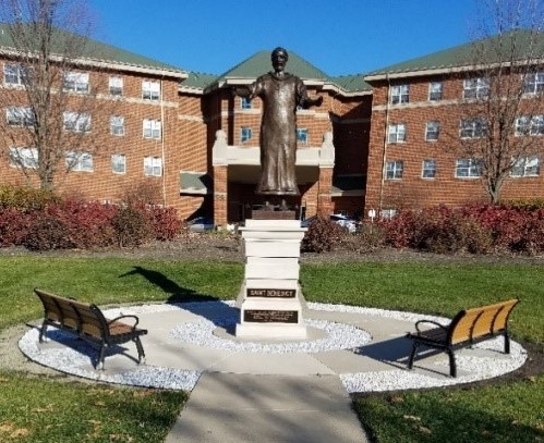 On September 23, 2020, a sculpture of St Benedict was situated in the front entrance of the Villa Center, a gift from the Sisters on their 125th Anniversary to the Residents of Villa St. Benedict. The spot for the statue had been prepared at the inception of building Villa St. Benedict; however, as all original sculpture is a work in progress, it was worth waiting for the right proposal.