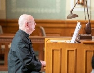 Brother Charles Hlava, OSB, (pictured playing the organ) began studying piano at age 4. He studied organ at De Paul University while he was in high school and later at Benedictine University. Now he serves as an organist at St. Procopius Abbey, and he looks forward to the end of the pandemic to return to Sacred Heart Monastery to play the organ.