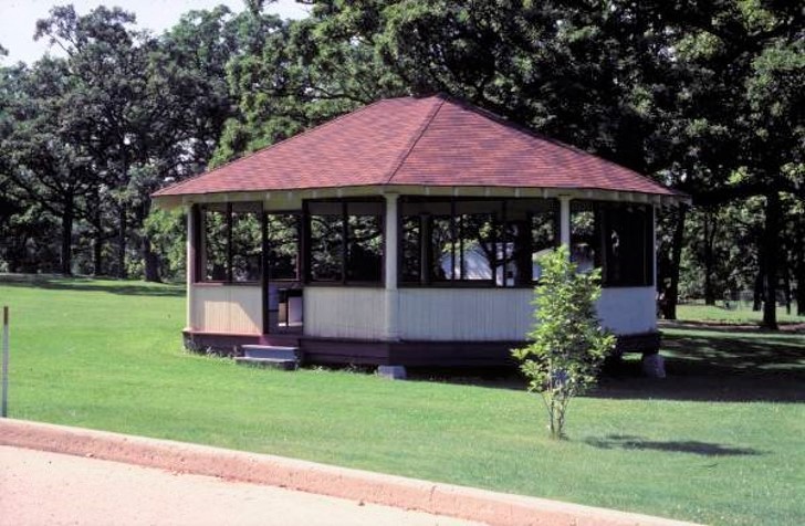 The Sunken Garden was a classic beauty. The sunken area was formed by excavating the dirt to about nine feet below the surface of the surrounding land, and this lower area was then lined with evergreen bushes and hedges to surround it. An inner pond was filled with bubbling water that contained gold fish and water lilies blooming in the summer months. In the background was and still is a statue of the Guardian Angel, and the limestone rock staircase still allows you to go down into it. Though the Sunken Garden still exists today, it no longer has the inner pond and the hedges are no longer there. Willow trees have been planted there instead to absorb the water in times of flooding.