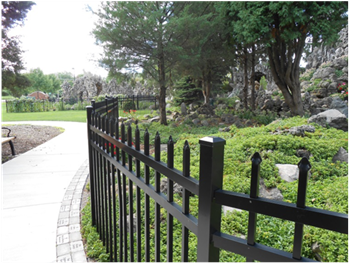 In 2005, a security fence was added for safety reasons around the grotto area. In 2011, the fence was moved closer to the grotto. This allowed memorial bricks to border the fence line and a sidewalk to be built to reach Villa St. Benedict and Sacred Heart Monastery. The memorial bricks include (and can still include) names of living or deceased Sisters, family members, alums, and residents of the Villa.