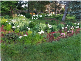 The picture on the left shows a portion of the evergreen flower bed located outside of the fenced area, immediately east of the sidewalk. The Easter lilies in our evergreen garden sprout year after year after they are brought from their adornment of the chapel after Easter.