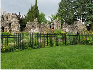 In the picture on the right in the midst of the stone structures, tiger lilies are proliferous perennials seen in bunches beyond the fence, located along the southeast area of the grotto.