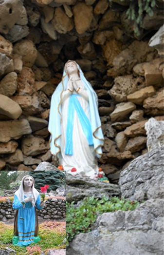 In 1931, the statues of the Blessed Mother and St. Bernadette were donated by Mrs. Mary Vasumpaur. The Blessed Mother statue was placed in the niche and St. Bernadette’s statue at her feet. Through the years, both of these statues weathered many storms and were repainted several times. Yet, they remain the central figures for pilgrims to come and pray at this beloved grotto, asking Our Lady of Lourdes to intercede for them with her Divine Son.
