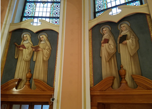 Benedictine Women Saints Murals are painted in our Monastic Choir space.