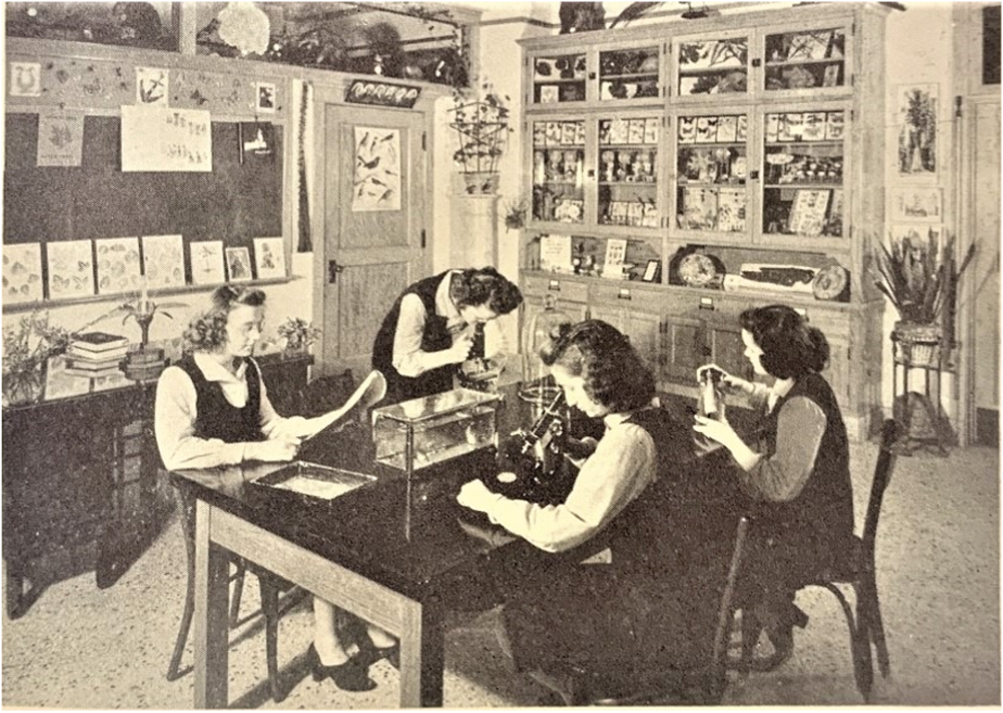 Here the SHA biology students are learning with specimens, microscopes, and all the visual aids possible around them. The Sisters who taught this subject were well trained and conveyed their subject with depth and enthusiasm. At various times the science teachers were Sister Mary Scholastica, Sister Dolorosa, Sister Celine, and Sister Agnes Ann (a.k.a. Sister Salome).