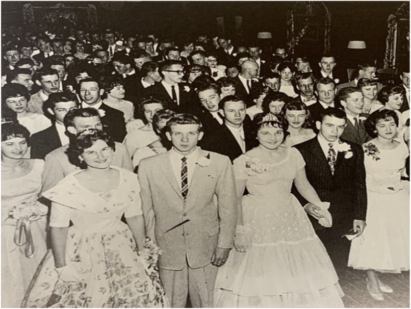 Though there were scheduled dances during the school year, the prom was the most formal event in which the juniors and seniors could find their own dates usually from St. Procopius Academy in Lisle or Marmion Military Academy in Aurora. The event took place in the SHA gym, decorated for the occasion in line with a chosen theme song. Hors d’oeuvres and punch were served as well to promote interactive socialization.