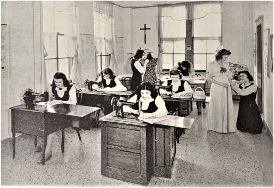 In the early years of SHA, home economics was an important subject since women were homemakers and needed to learn the skills of sewing. Many women in those days were able to make clothes not only for themselves, but also for their whole family. Did you notice that these machines were not electric? Sister Mary Juliana Konopa was the teacher in this department.